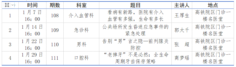 临沂市中医医院岐黄大讲堂2026年1月课程表抢先看