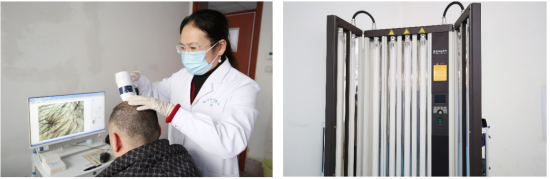 对于冬季高发的牛皮癣,皮肤科则采用“中药内服外洗+紫外线光疗”的中西医结合方案。来自沂南县的李先生患牛皮癣多年,冬季病情加重,皮肤出现大片红斑、鳞屑。医生为其开具个性化中药方剂,通过内服调理免疫,外洗软化鳞屑,同时配合与西医标准一致的紫外线光疗,增强治疗效果。经过一个半月的系统治疗,李先生的皮损部位明显缩小,鳞屑减少,皮肤开始逐渐恢复正常。