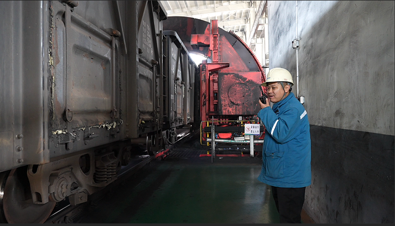 “机器能干大部分活儿,可关键环节还得咱人盯着。”兖矿东平陆港有限公司铁路工区副区长庞明瑾从除夕晚上开始就在翻车机房盯守。采访期间,一列从陕西榆林开来的运煤专列正缓缓驶入翻车机房进行翻卸,他和工友穿行在轨道之间,仔细确认着每节车厢的摘钩状态。