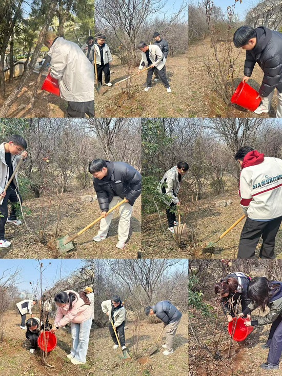 植树实践现场,暖意融融、干劲十足。参与师生手持锄头、铁锹等工具,严格按照植树规范,分工协作、配合默契,挖坑、扶苗、覆土、踩实,每个环节都一丝不苟、有条不紊,用双手为校园增添新绿、播种希望。大家热情高涨、干劲十足,身影在春光中形成一道靓丽的风景线,充分展现了新时代青年学子的昂扬风貌。