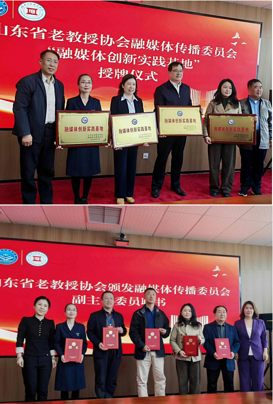 仪式现场,与会领导为山东省老教授协会产教科融合与发展专业委员会联络处(德州)、融媒体传播委员会联络处(德州)揭牌,向德州学院、山东华宇工学院、德州科技职业学院、德州工程职业学院授予“融媒体创新实践基地”牌匾,并为融媒体传播委员会相关委员颁发聘书。