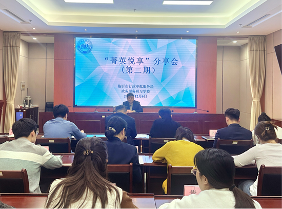 12月6日,临沂市行政审批服务局政务服务研习学校举办第二期“菁英悦享”分享会,局机关各科室、局属事业单位青年干部参加。