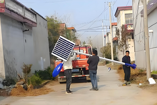 为进一步提高村内道路照明质量,保障群众夜间出行安全,郯城县李庄镇株柏五村安装太阳能路灯,照亮群众回家路。
