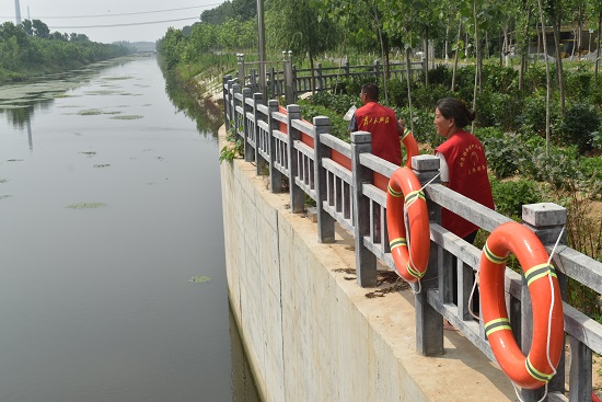 6月25日,郯城县杨集镇高瓦房村党员志愿者、防溺水安全员在村东河边开展防溺水常态化巡防巡查。