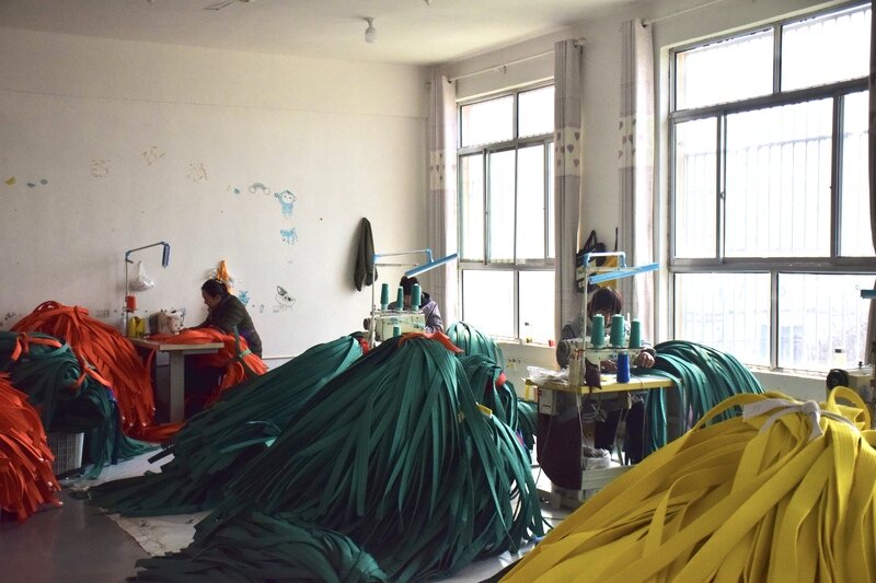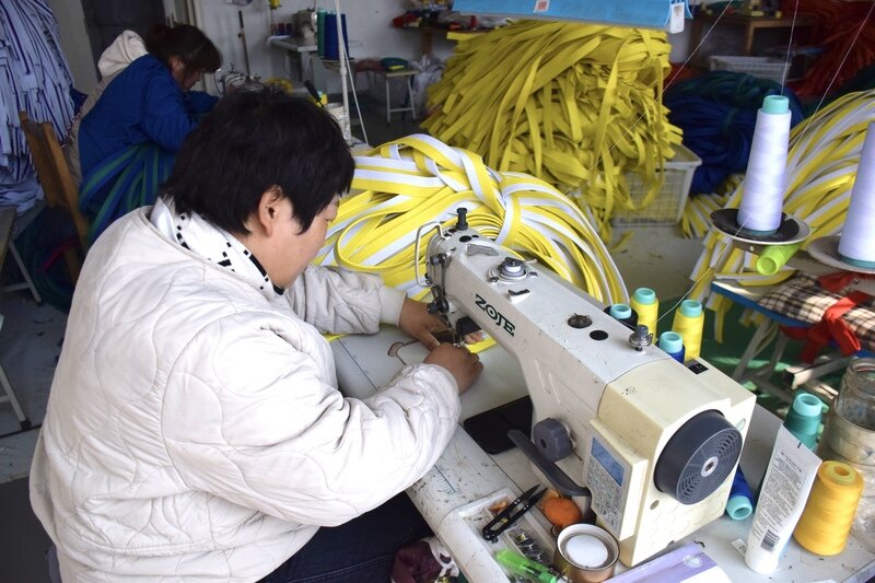 这样的“家门口致富车间”,并非个例。西街村盘活闲置院落,打造出3000余平方米的标准化生产场地,转型成为跆拳道腰带加工基地,车间内缝纫机声不断,工人们熟练操作设备、赶制订单,把闲置资源变成了增收载体,也让村里妇女的闲暇时间有了变现渠道。在崇化村泰安崇德服装鞋帽有限公司的加工车间内,同样是一派忙碌的生产景象,工人们专注于布料裁剪、锁边缝制等工序,将一块块原料加工成成品鞋帮……