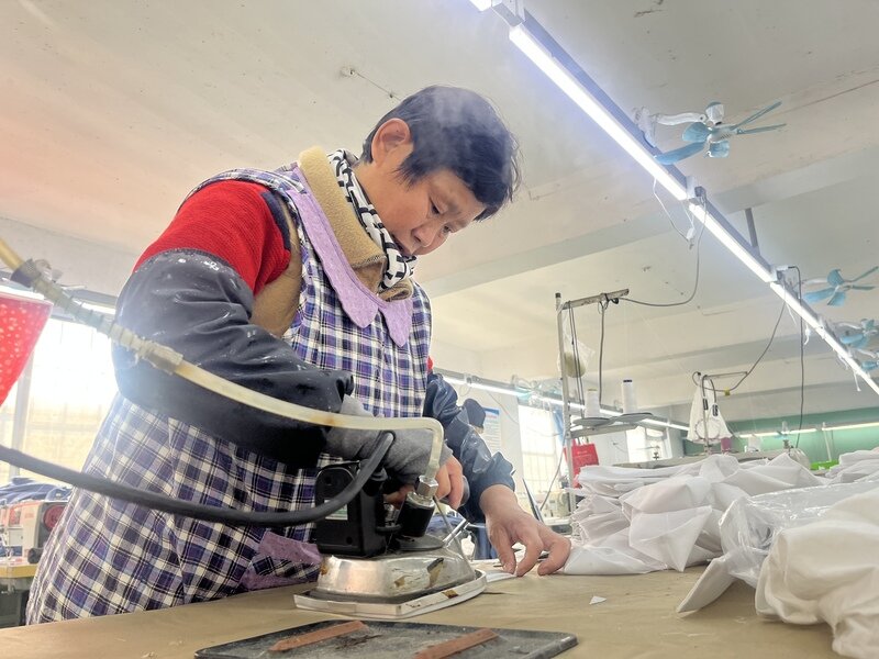 走进泰安盛鑫织造有限公司的生产车间,轰鸣的机器声里,工人们各司其职、分工协作,裁剪、缝纫、锁边、检验、打包等工序有序推进,全员埋头赶制订单、干劲十足。这家扎根乡间的织造企业,主营各类服饰加工,凭借贴合韩国市场的多元产品供给,拿下了持续稳定的订单,也为周边40余名本地妇女,提供了就近就业的稳定岗位,让大家不用远走他乡就能稳增收。