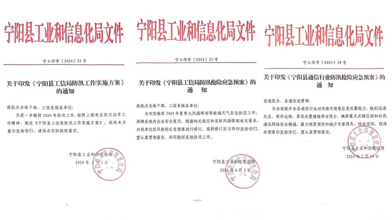 面对汛期“大考”当前,工信局立足于“早”、着眼于“实”,不断健全完善工信系统防汛工作体系,制发了《局防汛工作实施方案》《局防汛抢险应急预案》《通信行业防汛抢险应急预案》,局领导班子分头包保、机关全员联系工信系统各单位(企业),强化值班值守、汛期摸排、现场处置、应急保障。