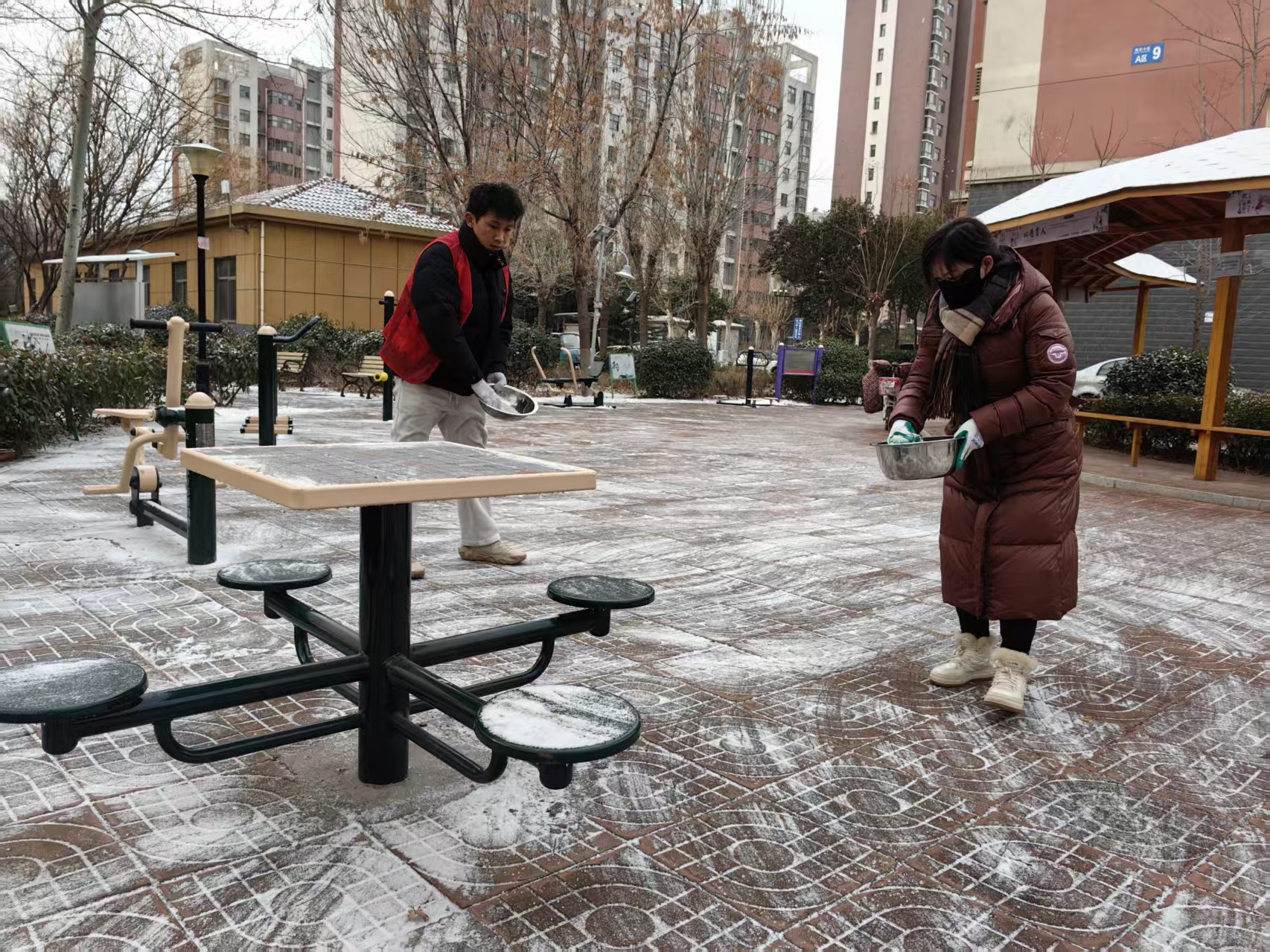鲁网1月19日讯 近日,寒潮来袭,上高街道辖区内路面积雪结冰严重,小区主次干道、公园内、健身步道、车棚出入口等区域通行受阻,给居民日常出行带来诸多不便。