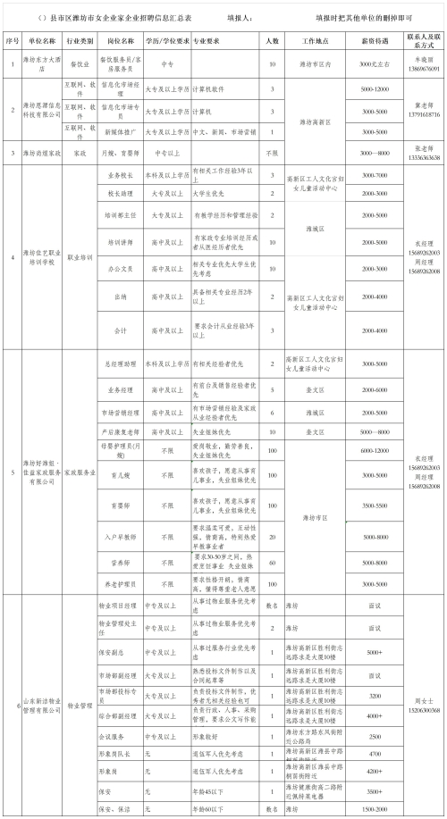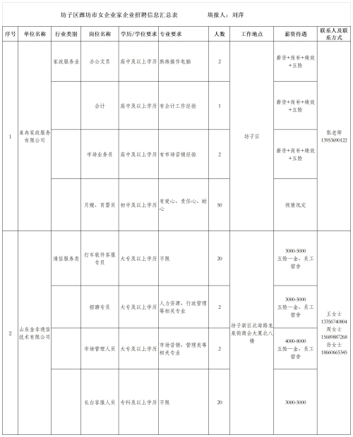坊子名企招聘信息表