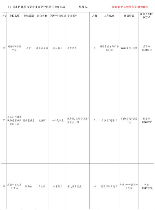 高密名企招聘信息表