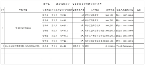 寒亭名企招聘信息表