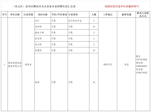 奎文区名企招聘信息表