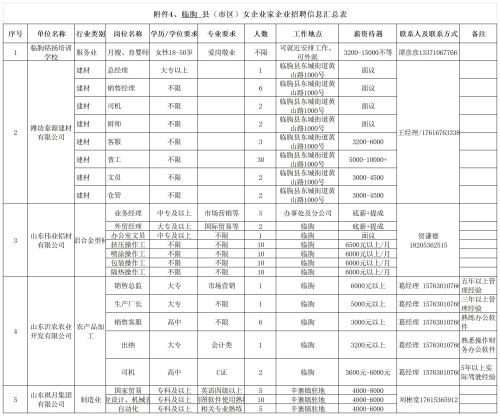 临朐区名企招聘信息表