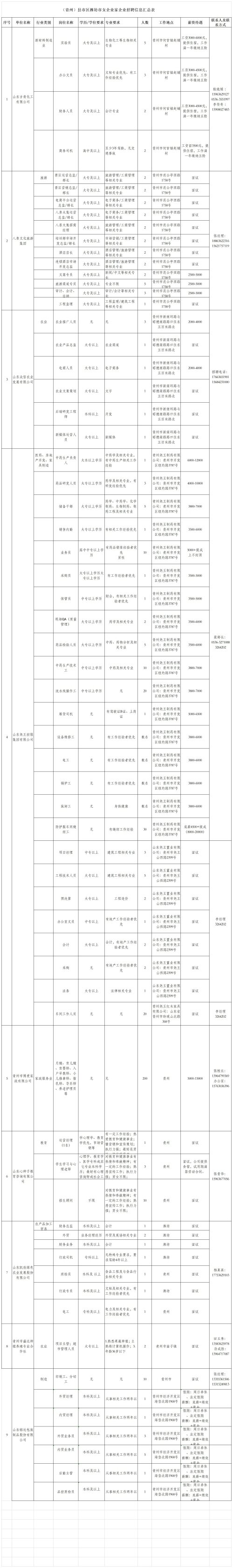 青州名企招聘信息表