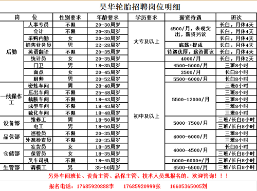 报名、面试地址:山东省寿光市侯镇项目区 山东昊华轮胎有限公司2号门进入