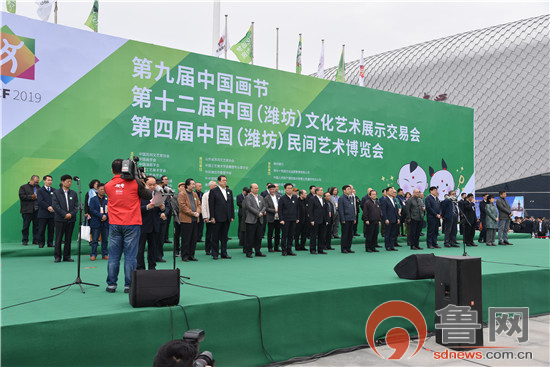 鲁网潍坊4月19日讯 (记者 张盟)4月19日,正逢人间四月天,中国画都潍坊的大家小巷春意盎然,繁花盛开。第九届中国画节·第十二届中国(潍坊)文化艺术展示交易会第四届中国(潍坊)民间艺术博览会在潍坊鲁台会展中心开幕。名画、名瓷、紫砂、雕塑、民间工艺品……本届文展会不仅规模大、档次高、亮点看点更是十足。