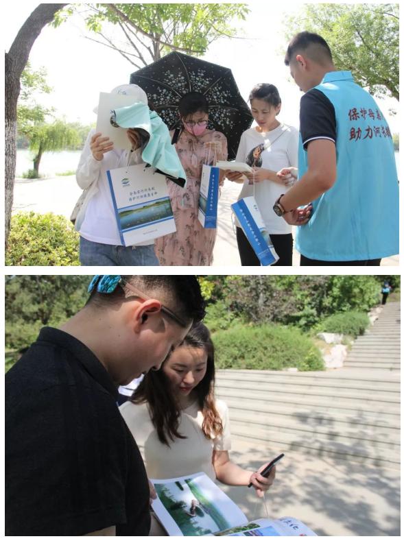 志愿者们在巡河途中,向来景区游玩的游客们分发了调查问卷,通过设置问题的方式,唤醒游客保护河湖的意识。在调查中,志愿者们还分发了潍坊市河长制办公室制作的《潍坊市河湖文化征文集》、《潍坊市河湖文化摄影集》、《潍坊河湖文化》三本刊物,通过制作精良的摄影作品、文学作品,将我市在河湖治理方面成效、河湖历史内涵等内容全方位向游客们展示,让游客们爱上潍坊河湖、爱上潍坊。