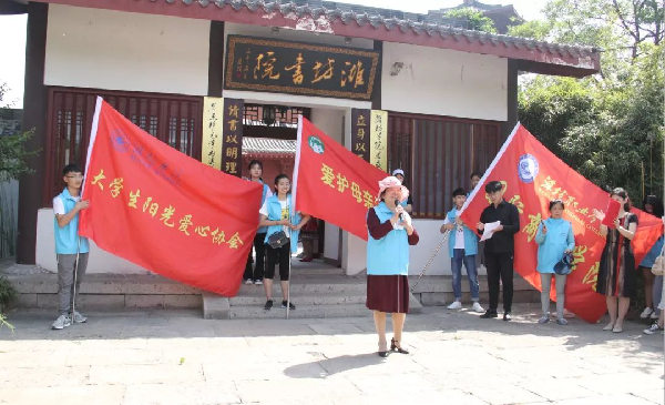 在景区内潍坊书院门前,志愿者们还准备了一场小型歌舞会,引来游客们的驻足。一曲曲谱写大好江河的歌曲、一支支活力四色的舞蹈,志愿者们用寓教于乐的方式,呼吁大家保护河湖生态。