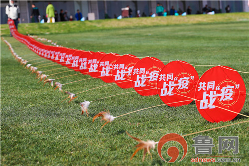 鲁网4月7日讯 4月5日,蔚蓝的天空缕缕白云,绿茵场上春风习习,来自潍坊的100多家企业和风筝爱好者,在浮烟山放飞场举行放飞活动,展现多彩的风筝文化,传递春天喜悦的心情,同时也以放飞的形式欢迎援鄂医疗队凯旋。
