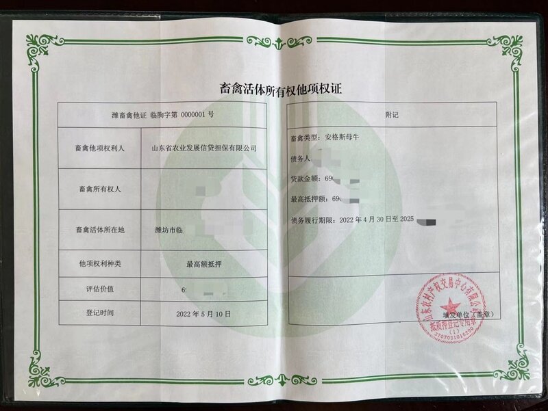 有效盘活农村资产资源。建成全省唯一的农村产权交易中心,在全国率先实现了“交易鉴证+抵押登记+政策担保+银行贷款+风险补偿资金池+不良资产处置”的农村产权交易融资模式,为推动乡村振兴注入了金融动力,累计为全省11个地市、54个区县办理农村产权流转交易业务8860宗,盘活农村各类资源超145亿元。稳慎推进农村宅基地改革国家试点,715.5亩农村集体经营性建设用地入市交易,实现历史性突破。依托前阙庄村,探索农村产权金融化改革新模式,盘活农村土地、大棚等沉睡资源,使资源变资产、资产变股权、农民变股民,为农村发展注入强大活力,被评为2021年潍坊市改革创新典型案例。探索畜禽活体抵押融资新机制。首创性开展畜禽活体他项权抵押登记业务,颁发全国首张《畜禽活体所有权他项权证》,创新活牛抵押融资新模式,实现畜禽活体成功抵押贷款,进一步拓宽了畜禽业抵押担保范围,解决了畜牧养殖业融资难题。截至目前,已有1000头活牛开展抵押,发放贷款3000万元。
