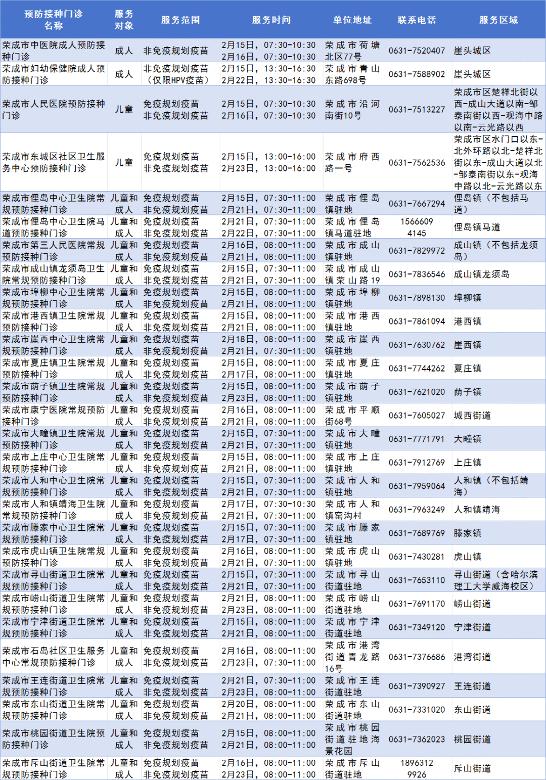 鲁网2月10日讯 为切实保障春节期间市民预防接种需求,现将2026年春节假期(2月15日-23日)荣成市预防接种门诊开诊时间公示如下。请有接种需求的市民携带预防接种证或有效身份证件前往就近的预防接种门诊进行接种。(鲁网记者)