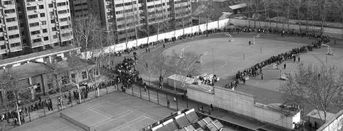 昨日艺考报名首日,在济南商贸学校外省艺考报名现场,报考浙江传媒学院的艺考生在操场上排成千米长龙,由于报名人数较多,以至于长长的队伍延长到了操场外头。记者郑涛摄