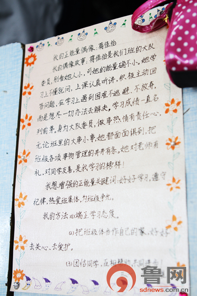 甸柳一小三年一班的赵箫唯在纸上写出了自己的正能量偶像。