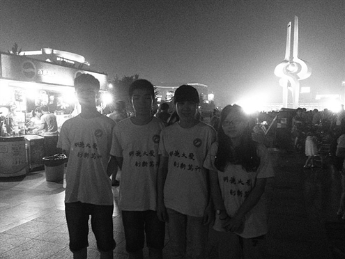 昨晚,参加“生存挑战”的几名成员在泉城广场合影留念