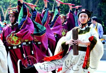 28日祭孔大典上,“乐生”正在进行乐舞表演。 本报记者 张晓科 摄