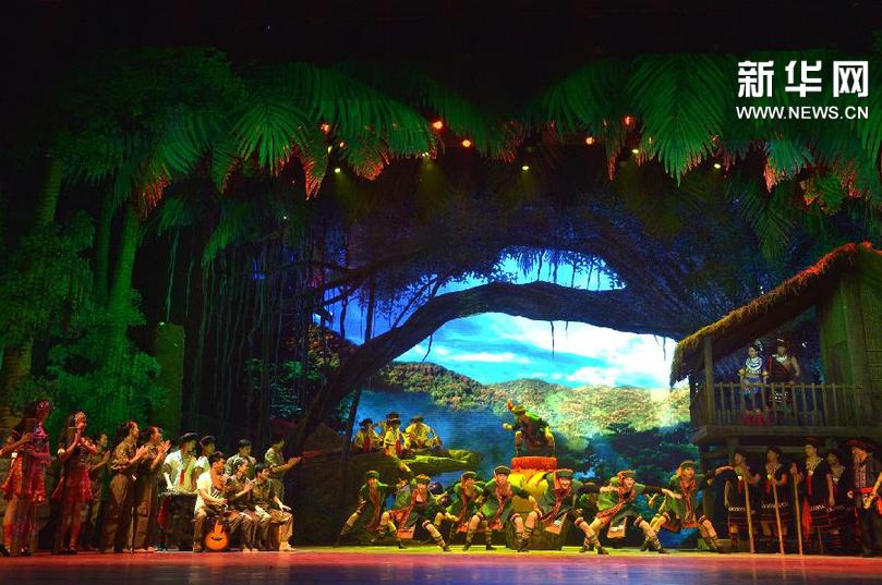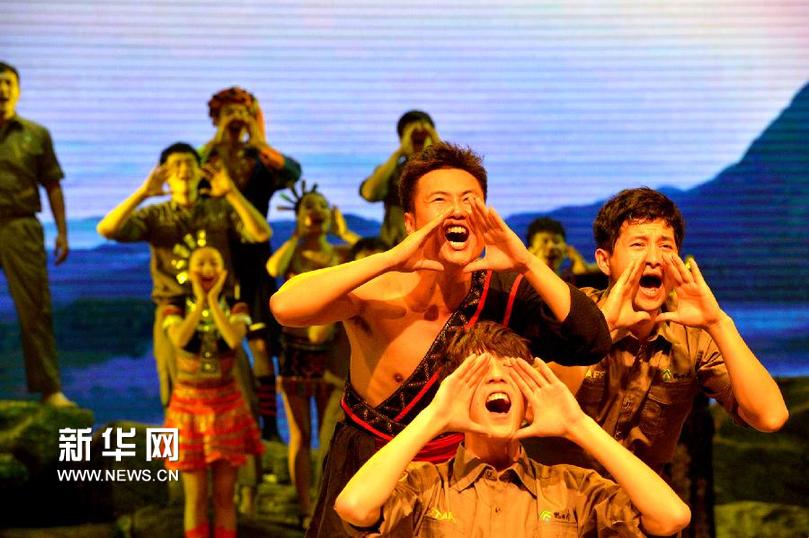 新华网山东频道10月18日电 17日,第十届中国艺术节参赛参演剧目、由海南省三亚市艺术团创作的民族歌舞剧“执着”在山东省日照市会展中心大剧院上演。该剧以27位刚刚毕业的大学生在海南省白沙县鹦哥岭自然保护区工作的真实事迹为原型,以丰富的舞台艺术形式,生动展现了这个青年团队坚守大山深处,开展生态保护和科研工作的苦与乐、寂寞与精彩、付出与收获。他们坚守,执着,传递正能量,诠释了新一代大学生对“青春”、“理想”的理解,讴歌了年轻人对理想和信念的坚持。