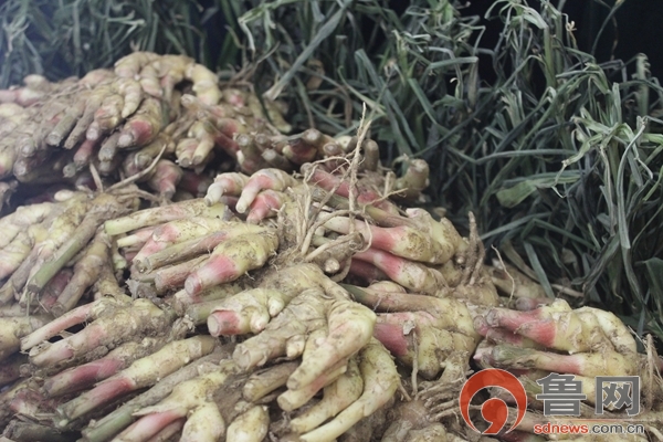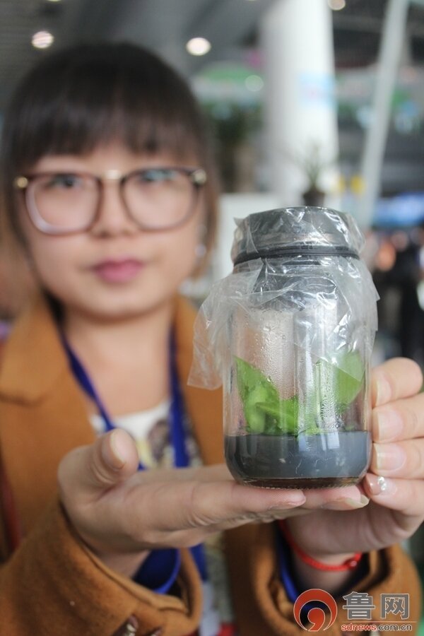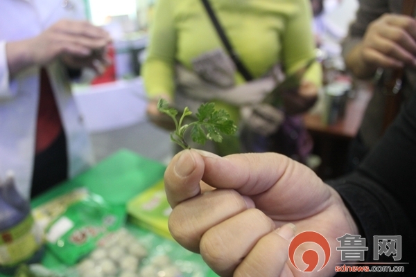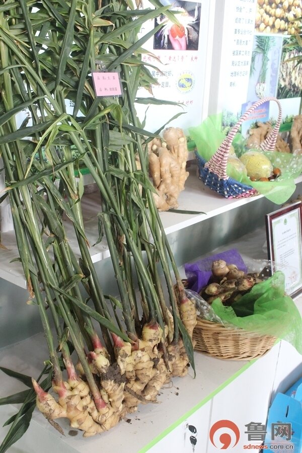 参展商现场推销回家可以边种边吃的生姜,还挺受欢迎。