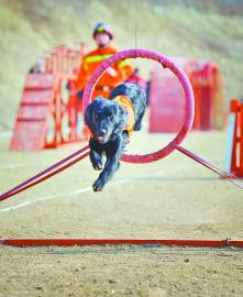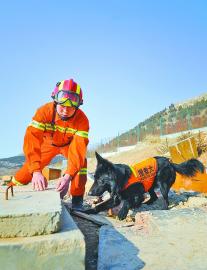 他介绍,在训练搜救犬时,要经过亲和、服从、环境适应、实战训练4个阶段。要先和犬“交朋友”,这个阶段大概需要一个月时间;其次要服从训练,如坐、立、卧等;然后还要进行心理训练,这个阶段很重要,要让搜救犬适应危险环境;最后是搜救训练,让搜救犬在坑道、废墟、箱体等进行搜救。