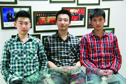 上演“中国合伙人”的山大三学子,从左至右为柴政、于志远、马文川
