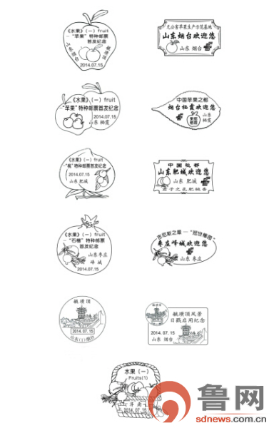 另外临沂、淄博、东营、济宁等地,也分别启用形态各异,设计新颖的水果纪念邮戳。