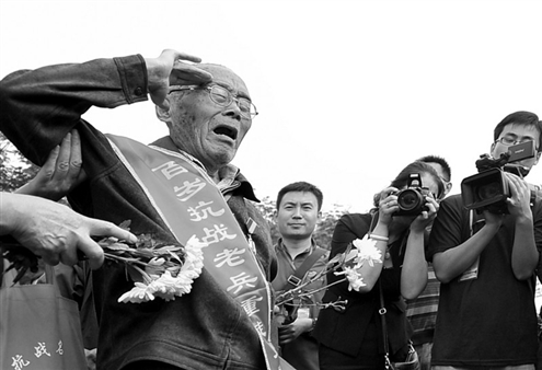 百岁老兵泪洒无名英雄墓