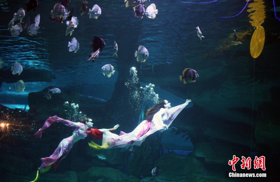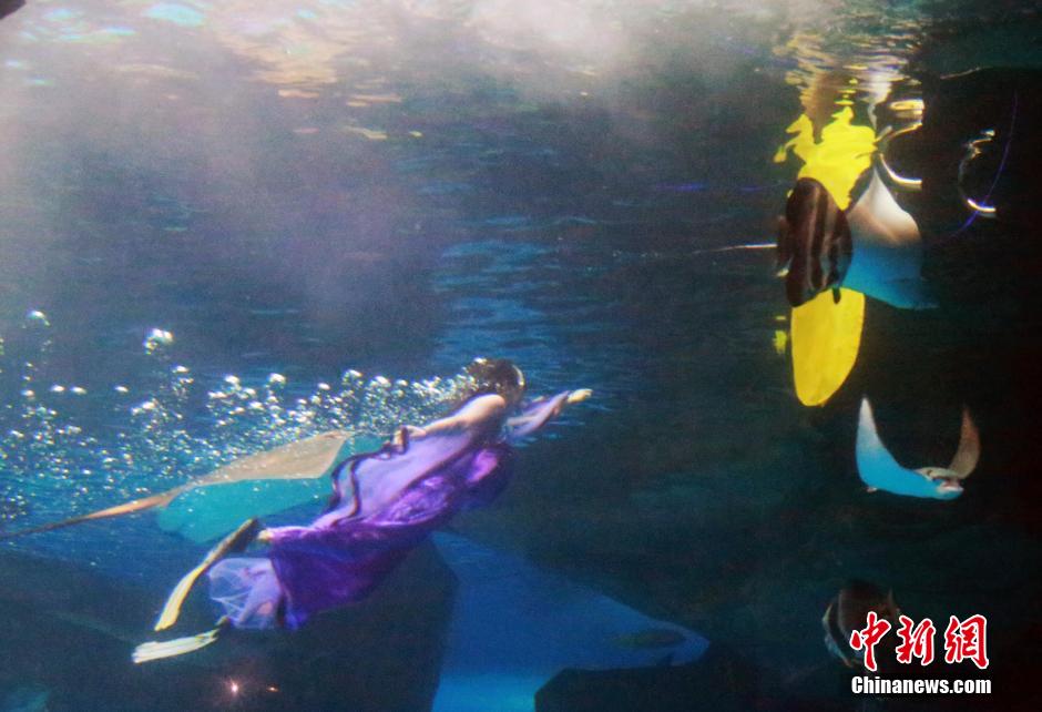 山东海洋馆上演“嫦娥水中奔月”