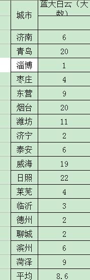 鲁网9月10日讯(记者 罗燕)今天,山东省环保厅公布8月份山东大气环境质量17城市排名。8月份,山东空气质量情况不大妙,“蓝天白云,繁星闪烁”天数平均为8.6天,同比减少了9.7天。其中,淄博仅1天可见“蓝天白云”。