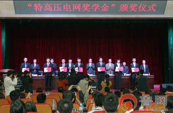 鲁网10月14日讯(记者 刘梅婷 通讯员 侯婷 郭轶敏)今天,首届“特高压电网奖学金”颁奖仪式在山东大学举行。经过为期3个月的提名、考察和筛选过程,依据综合成绩、科研能力等指标,获奖学生名单最终确定,15名山大电力专业学子每人喜获1万元的“特高压电网奖学金”。