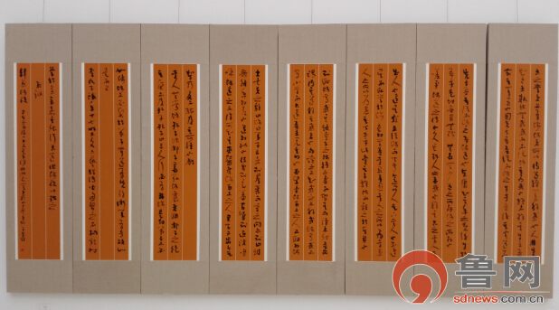 鲁网10月19日讯(记者 刘梅婷)今天上午, “驿道题壁——于茂阳书法作品展”在山东省美术馆开展。据了解,此次展出的书法作品内容包括老子、孔子、孟子等先秦诸子百家的箴言论语;济南历代名人曹操、曾巩、赵孟頫、辛弃疾、李清照等人的诗文辞赋;唐诗、宋词、国学警示名句及书法教育等内容。展览期间,于茂阳书法艺术研讨会召开,近百位著名学者参加。展览将持续至10月26日。