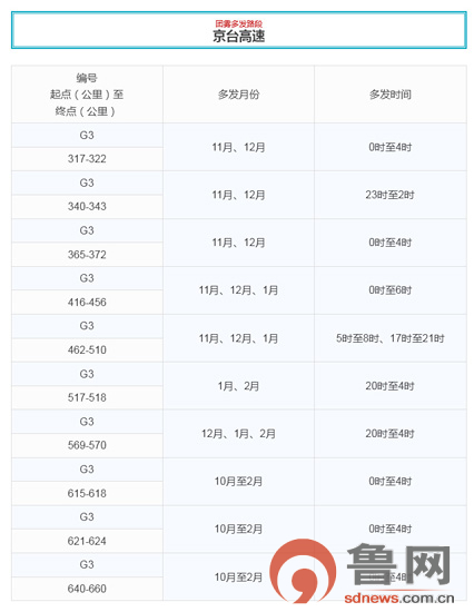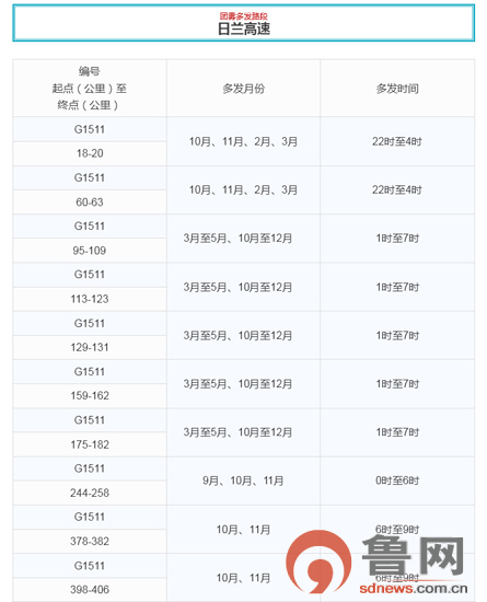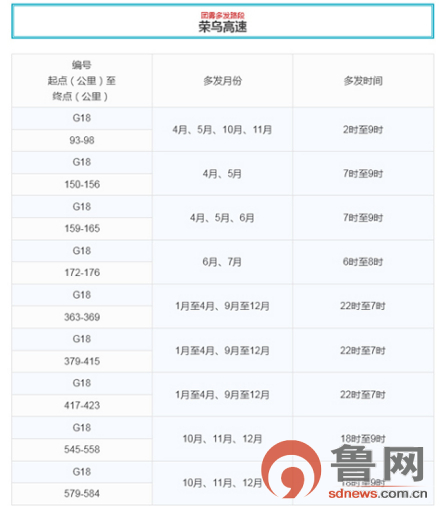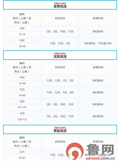 鲁网10月31日讯(记者 王文婷)日前,公安部发布交通预警提示,公布了全国高速公路上的1420处团雾多发路段,其中涉及山东境内的有78处。交警部门提示广大驾驶员,遇团雾驾车应减速慢行,根据能见度调整车速,不要就地停车,以免发生追尾。