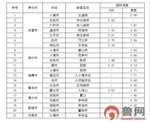 鲁网2月16日讯(记者 罗燕 通讯员 张素华)近日,山东省环保厅通报了今年1月省控重点河流基本消除劣五类水体工作进展情况,全省有21个断面水质劣于五类,占20.4%,7个市存在劣V类水质断面。