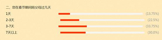 大众日报、大众网融媒体调查问卷之"怎样陪伴家人"调查数据新鲜出炉。截至2月20日15时,统计数据显示,57.5%的网友认为包饺子对于春节团聚最重要。约67%的网友能有三天以上时间来陪伴父母,其中,陪伴父母超过七天的网友占了三成。