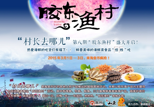 鲁网·特色山东作为山东重点新闻网站与国内知名第三方电子商务平台淘宝网合作搭建的专业山东特产运营平台,积极响应山东省政府号召助推中小企业开展电子商务。特色山东决定联合胶东海产品生产销售企业,开启“淘金币”乡村系列之“村长去哪儿”第八期“胶东渔村”活动,推出源产地直销的烟台海参、乳山牡蛎、长岛鲍鱼、胶东海带、渤海大对虾等著名胶东海洋食品,推介给更多喜爱胶东海产品的消费者。