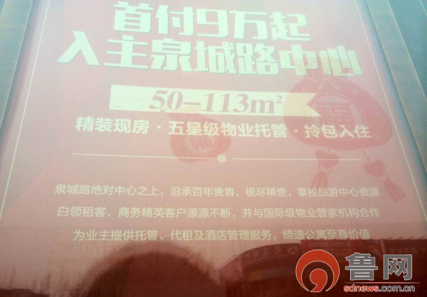 “说的是五星级物业托管,现在这个托管公司都跑了,世茂还在继续这样宣传。”业主张女士认为,济南世茂国际广场有进行虚假广告宣传的嫌疑。记者看到,在济南世茂国际广场售楼处摆放的宣传海报上有这样的广告语:与国际级物业管家机构合作,为业主提供托管、代租及酒店管理服务,缔造公寓至尊价值。