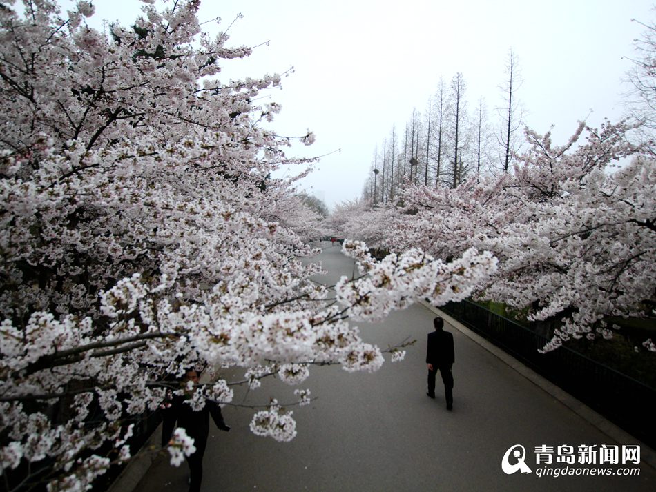 青岛新闻网4月14讯 又到了青岛一年一度的樱花季,中山公园的樱花竞相吐艳,繁花似锦,每天约有10万市民和游客到中山公园扎堆赏樱花,许多网友戏称“人比花还多”。