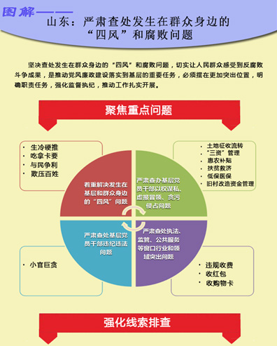 5月19日,山东省纪委通报8起发生在群众身边的腐败典型问题;5月25日,淄博市纪委通报4起发生在群众身边的腐败典型问题;5月29日,聊城市纪委通报8起发生在群众身边的腐败典型问题;6月9日,山东省纪委再次通报9起发生在群众身边的腐败典型问题……近期,山东各级纪检监察机关聚焦发生在群众身边的“四风”和腐败问题,突出重点人员,紧盯重点区域和部位,集中排查一批问题线索,严肃查处一批突出问题,通报曝光一批典型案例,以实际成效取信于民。
