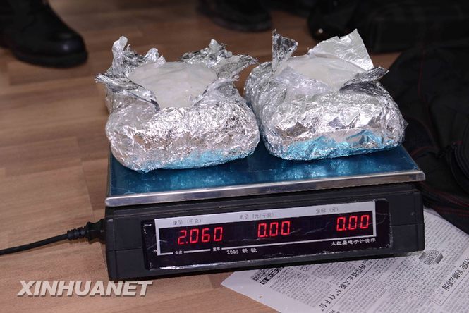 2014年1月23日,边防民警称量从徐某身上缴获的冰毒2060克