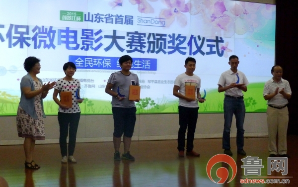 鲁网7月14日讯 (记者鲁珊珊)7月14日,由山东省环保厅、山东广播电视台指导,邹平县环保局、邹平县嘉业生态园有限公司主办,齐鲁网、山东省网络视听协会承办的2015“颜景江杯”山东省首届环保微电影大赛在邹平环保局环保教育中心成功举行颁奖仪式,对《倡导低碳生活 共享碧水蓝天》等9部获奖作品进行了颁奖与表彰。同日,邹平环保教育基地也正式揭牌。