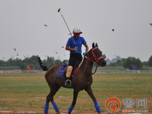 马球比赛前,运动员在进行热身