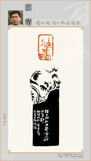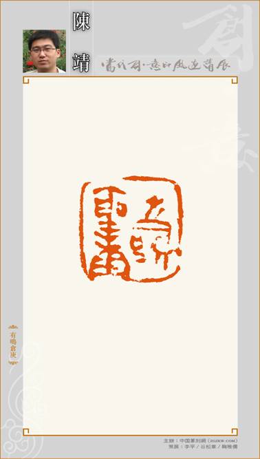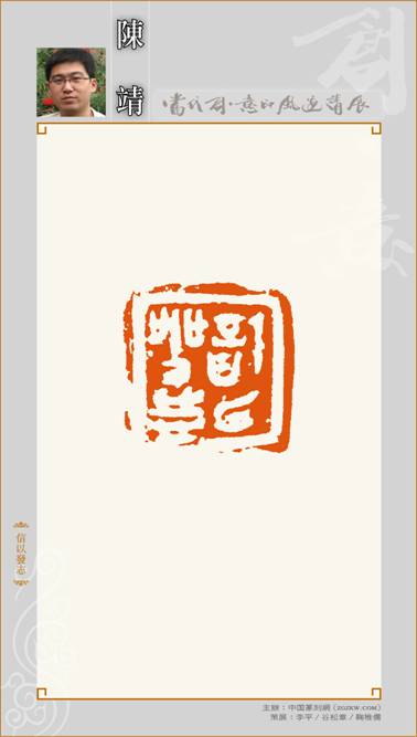 陈 靖 山东艺术学院美术学院副教授、中国书法家协会篆刻专业委员会委员、 西泠印社社员、山东省书法家协会篆刻委员会秘书长、山东印社副秘书长、山东省青年书协副主席等;